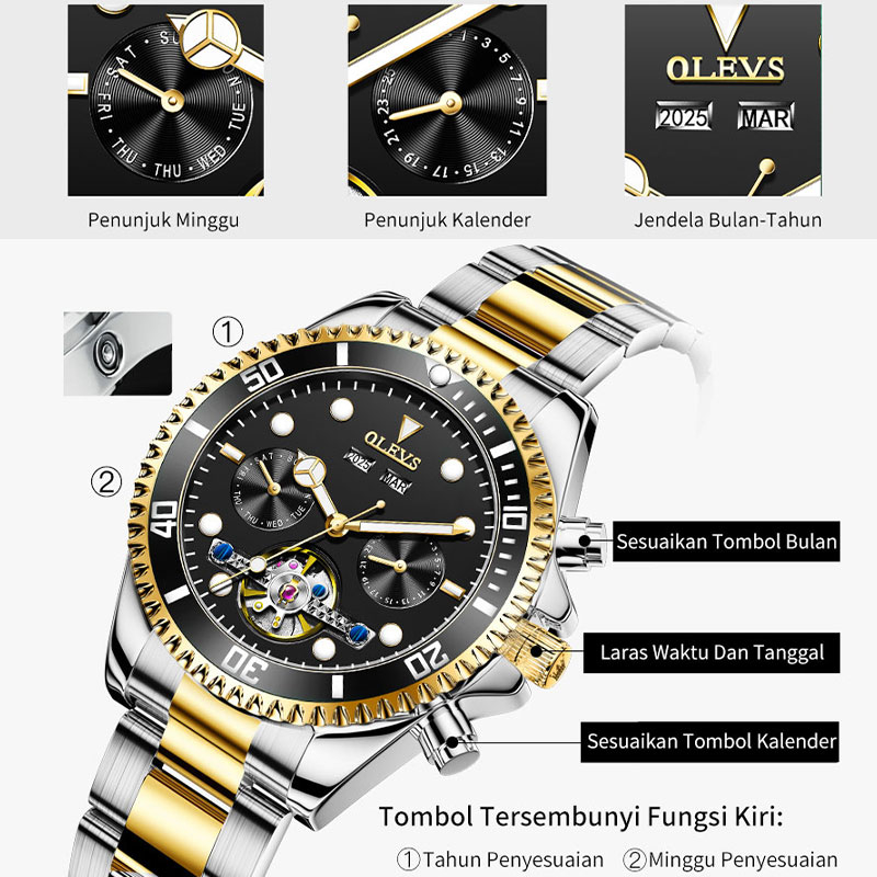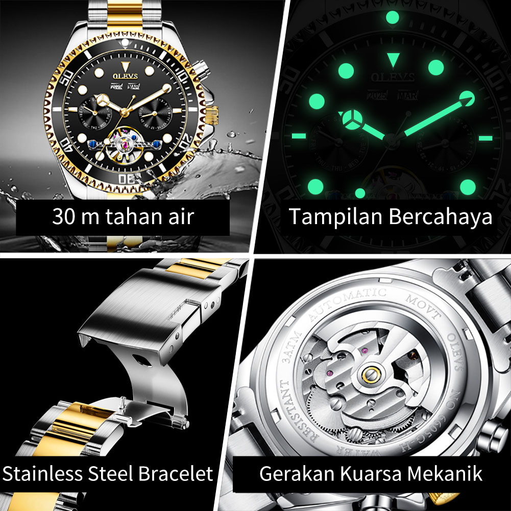OLEVS Jam Tangan Automatic Pria Original Anti Air Mewah Multi-Function Watch Men