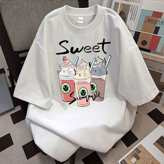 Jessica Tshirt Lengan Pendek Kaos Oversize Korean Style Motif Boba Sweet Bahan 100% Cotton