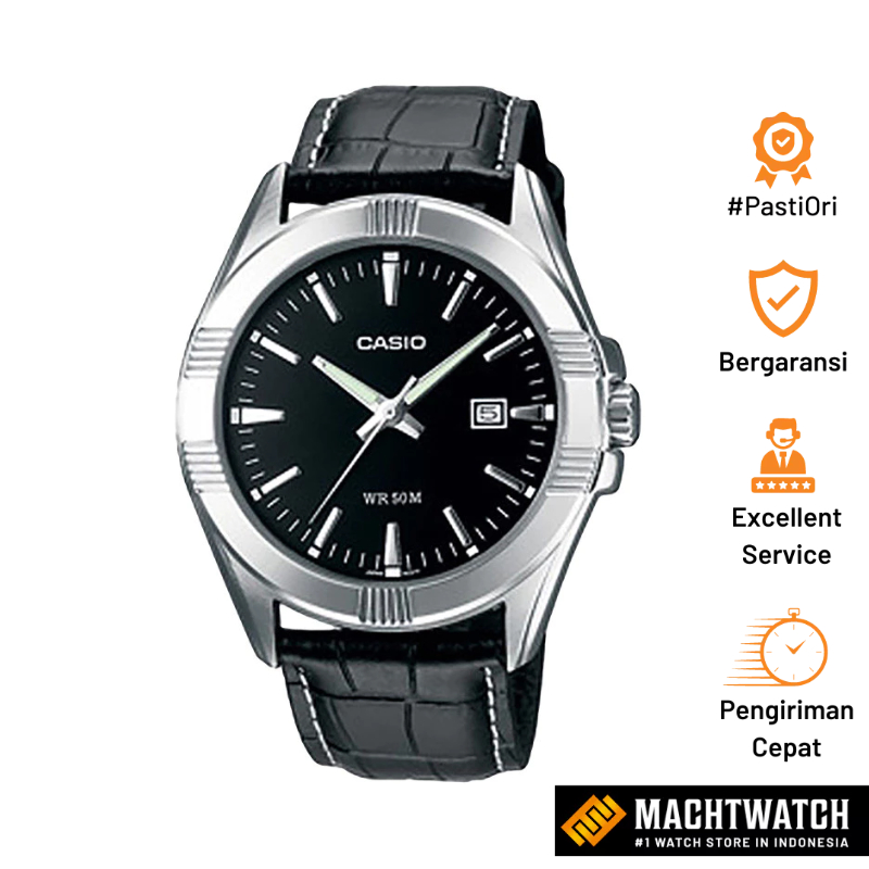 Jam Tangan pria Analog Casio Standard MTP-1308L-1AVDF MTP1308L Black Leather Strap