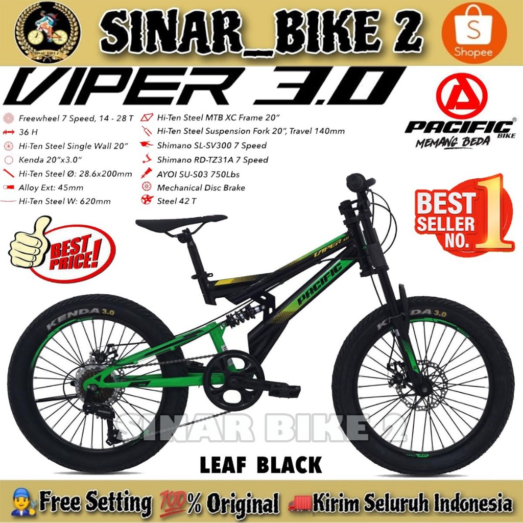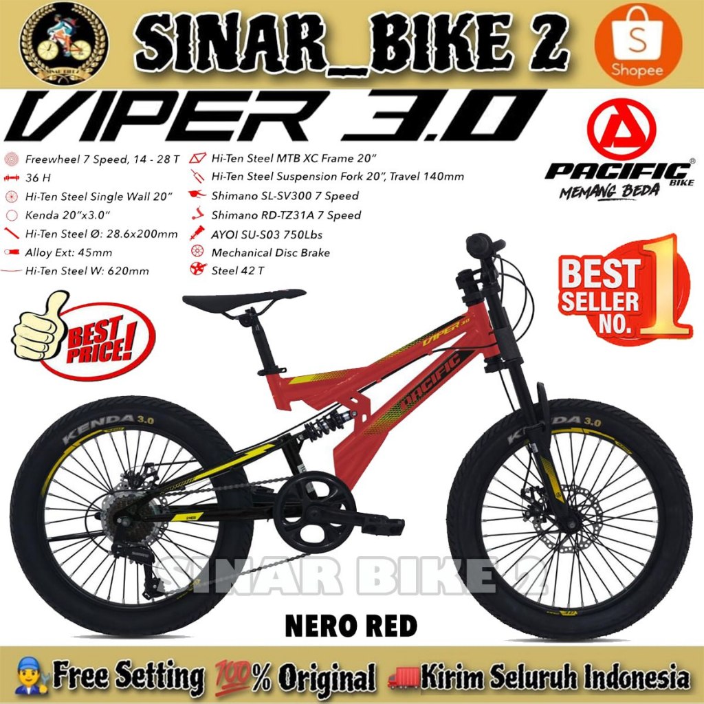 Sepeda Gunung Mtb 20 Inch Pacific Viper 3.0 Full Suspensi 7 Speed New Collor