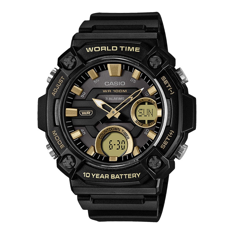 Jam Tangan pria Analog Digital Casio Standard AEQ-120W-9AVDF AEQ120W Black Resin Strap