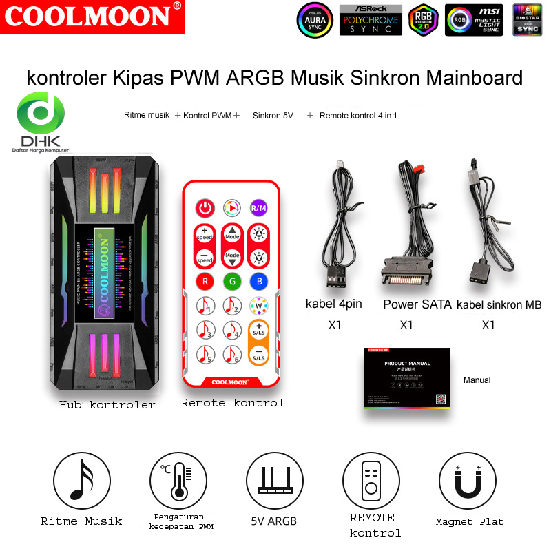 Coolmoon Remote hub kontroler ARGB PWM FAN Sinkron Musik