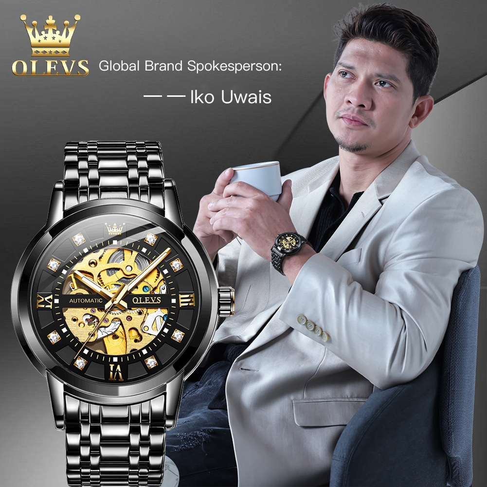 OLEVS Jam Tangan Automatic Pria Anti Air Original Tahan Keren Led Hitam Putih Terbaru 2024 Luxury Stainless Watch Men