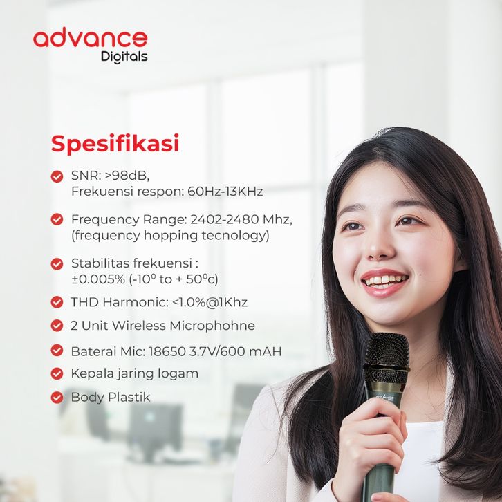 Advance Mic-207 Dual Microphone Wireless Anti Noise Garansi Resmi 1 Tahun