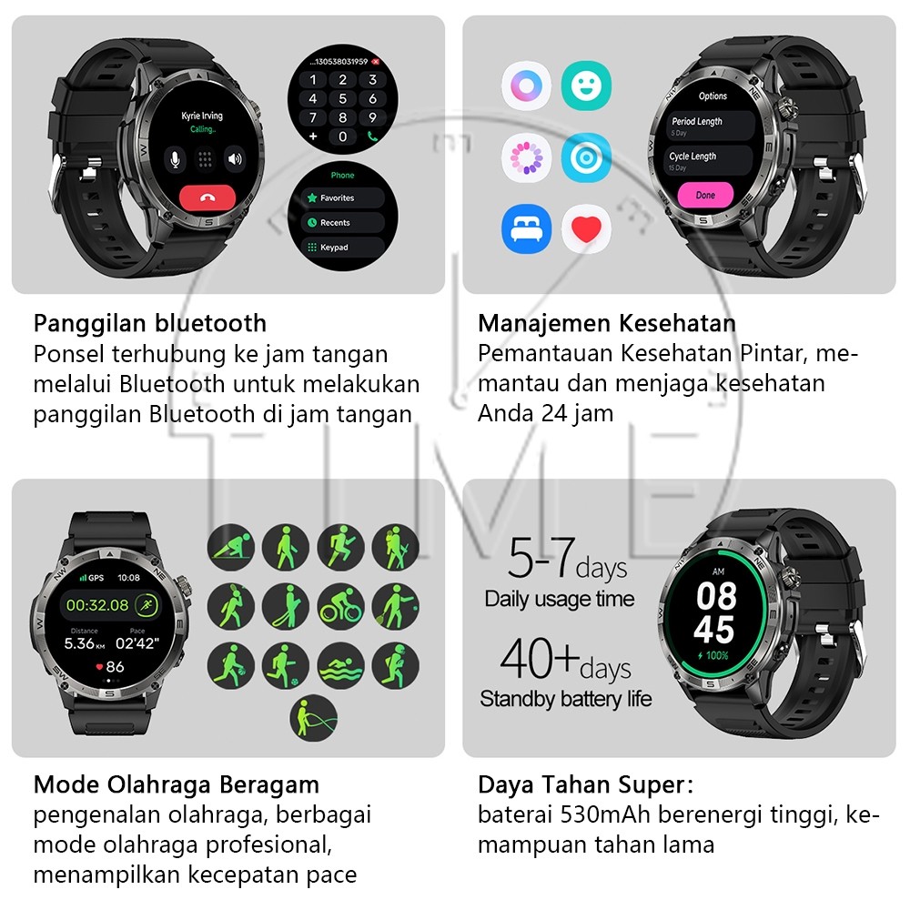 TIMEVER TR1 Built-in GPS SE Layar AOD smartwatch navi jam tangan pintar tahan air 3ATM NFC watch jam tangan militer