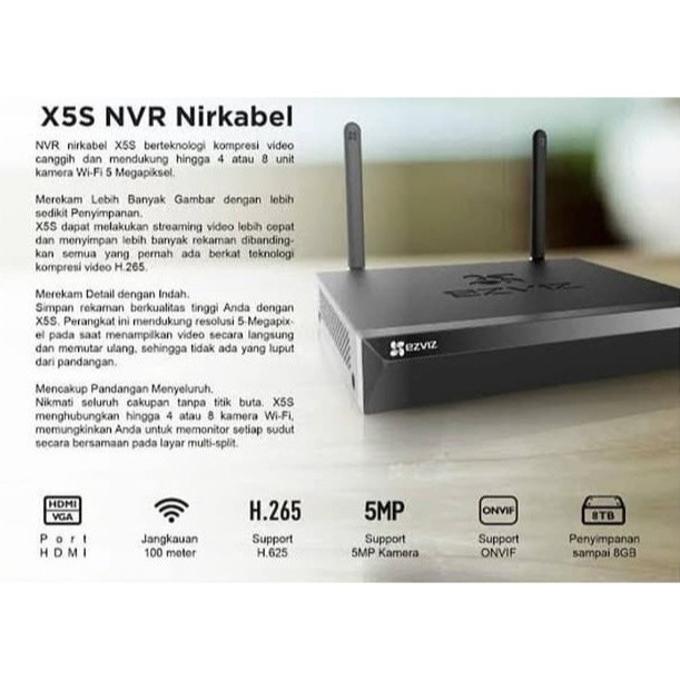 NVR Ezviz CS-X5S-8W Wireless 8CH / 8Channel Garansi Resmi