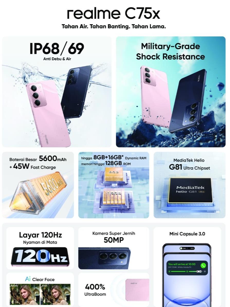 REALME C75X 8/256 GB GARANSI RESMI REALME ANDROID C75X 8/128 GB 45W FAST CHARGE RESMI