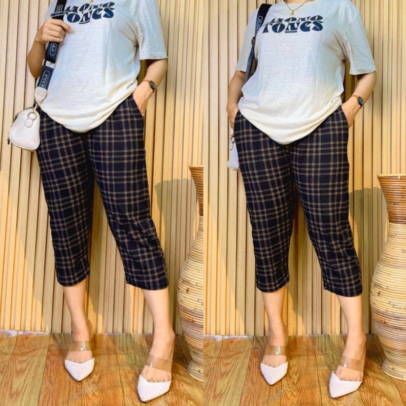 (Kotak) CELANA 3/4 JUMBO WANITA / CELANA KOTAK KOTAK CEWEK BIG SIZE / CELANA KAIN / WAFLE LIPIT / CELANA SANTAI / CELANA HARIAN / Celana Murah / Celana Santai