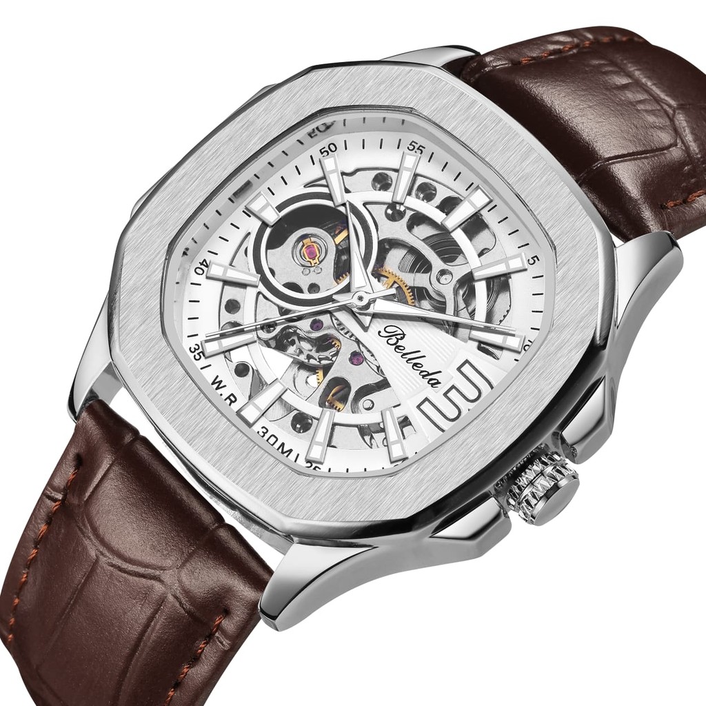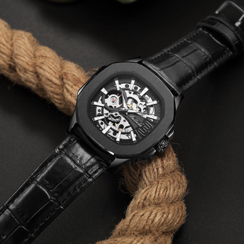 Jam Tangan Pria Wanita Belleda 9633 Tali Kulit Automatic Sakelton Unisek Anti Air 3 atm Watches