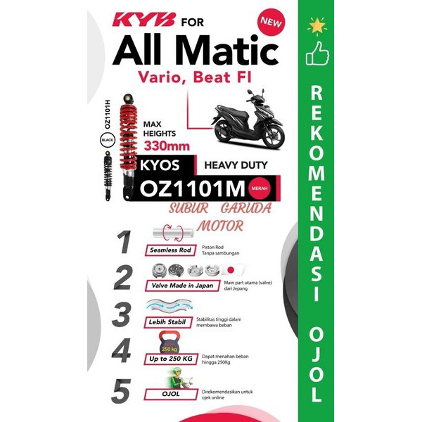 SHOCKBREAKER KAYABA HEAVY DUTY VARIO 125 BEAT FI SKYWAVE PANJANG 33 CM BEBAN BERAT MERK KAYABA KYB