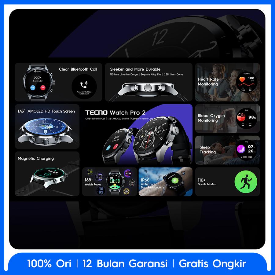 [Official Store ✔️] TECNO Watch Pro 2 - 1.43”AMOLED HD Screen, Clear Bluetooth Call, IP68, 110+ Sports Modes - RESMI