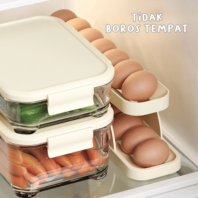 [MA] Rak Telur 2 Tingkat / Egg Storage Box Tempat Penyimpanan Telor Mini 2Susun Otomatis Hemat Ruang
