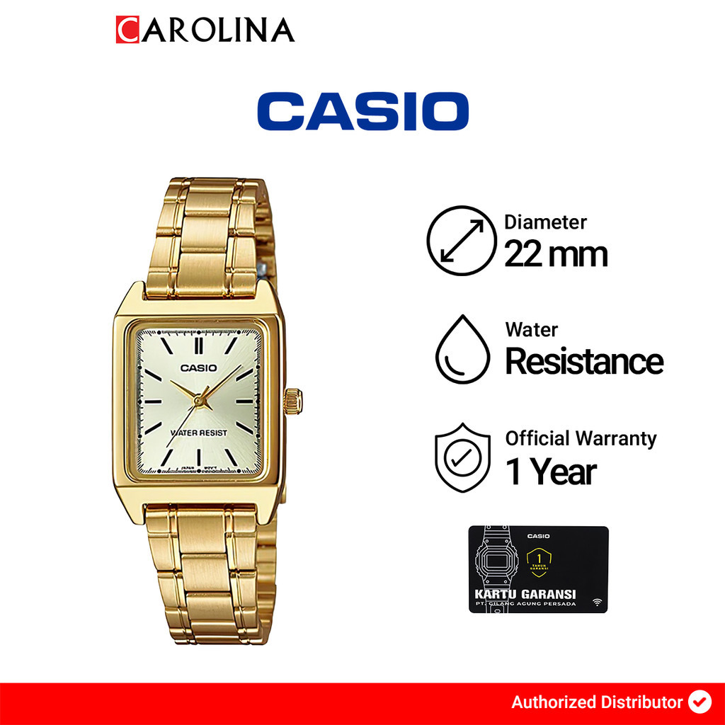 Jam Tangan Wanita Casio General LTP-V007G-9E Tank White Dial Gold Stainless Steel Band