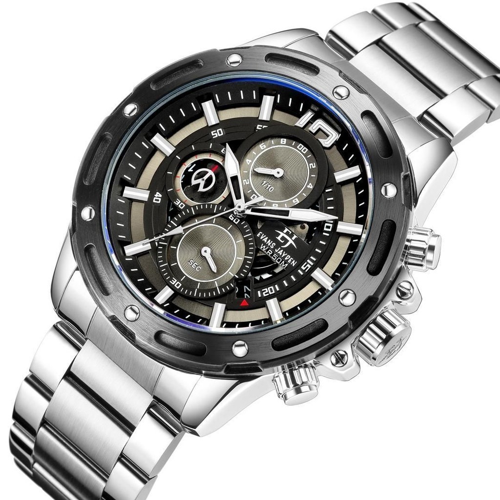 Evans Jayden Jam Tangan Pria EJ 9494 Rantai Stainless Kaca Sapphire Water Resistant