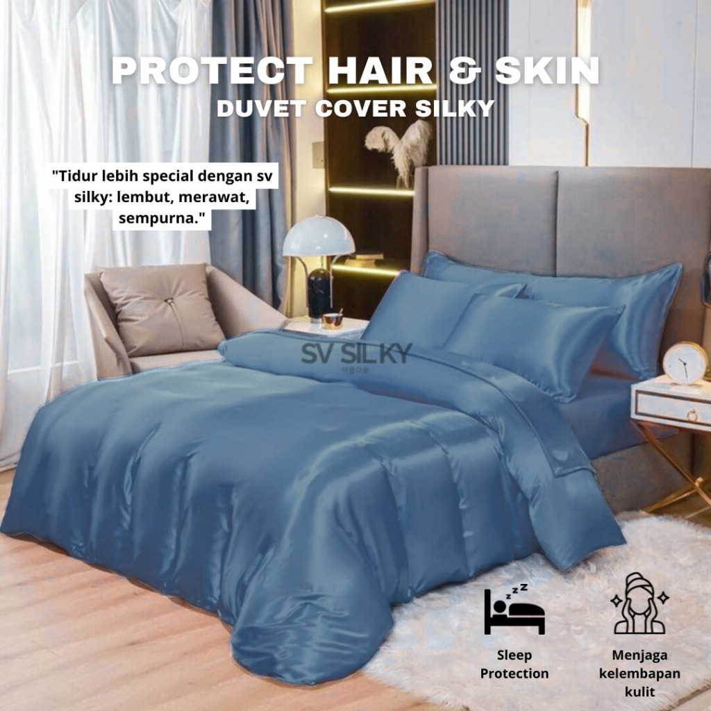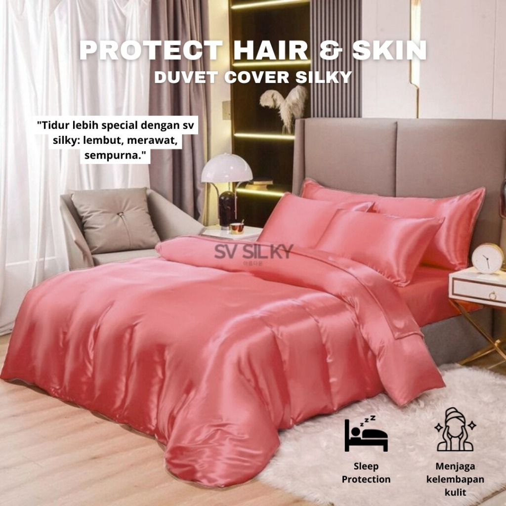 Sprei Set Sv Silky Premium Satin Full Set Duvet + Sarung Bantal Guling Bedding Set Sprei Sv Silky Satin Premium Adem, Ha