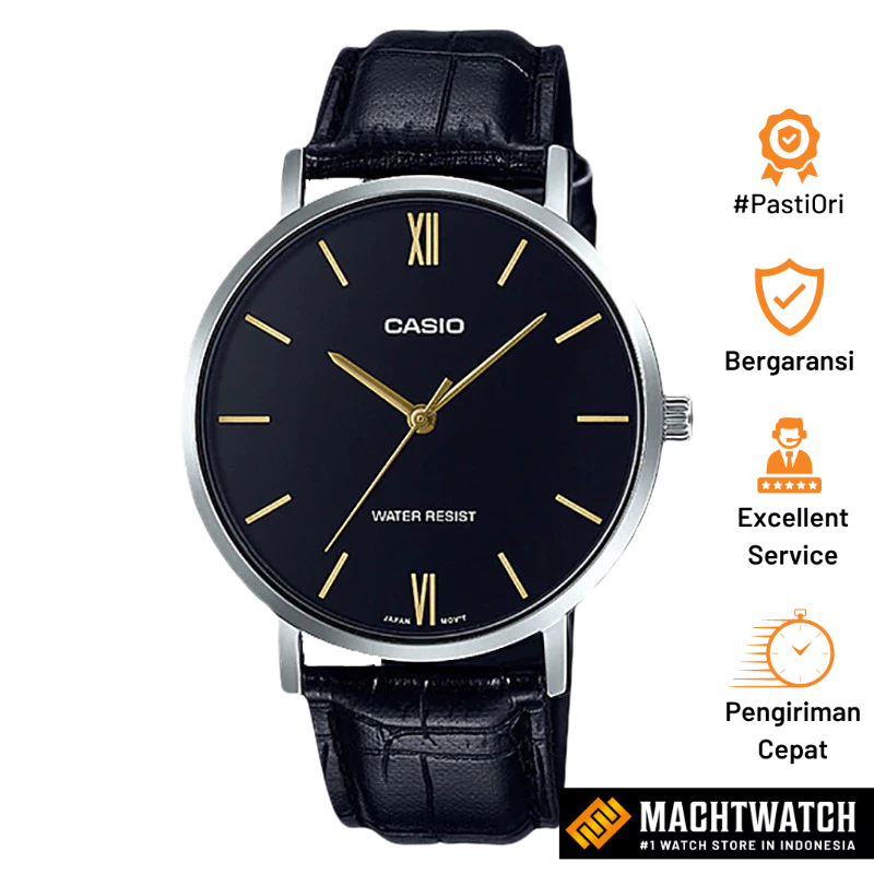 Jam Tangan Pria Casio General MTP-VT01L-1BUDF MTPVT01L Black Dial Leather Band