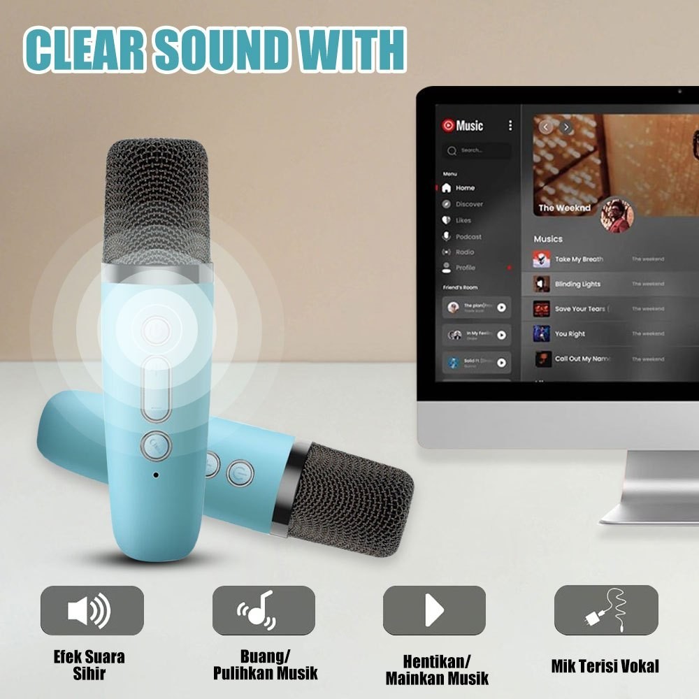 Bluetooth Mini Speaker Karaoke Wireless Speaker 2 Mic 1 Set Karaoke Speaker KTV Cute Full Bass Wireless Karaoke