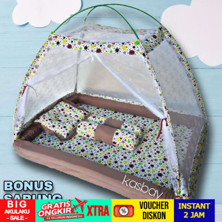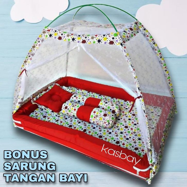 KASUR BAYI KELAMBU/TEMPAT TIDUR BAYI SET LENGKAP BONUS SARUNG TANGAN BAYI PREMIUM BY BOBOMOL