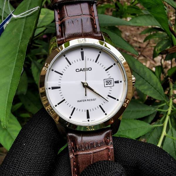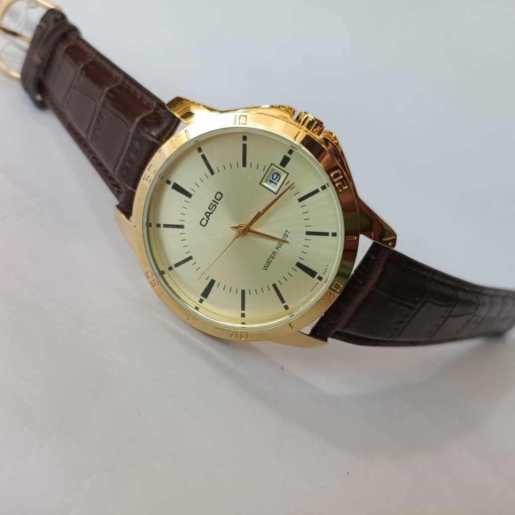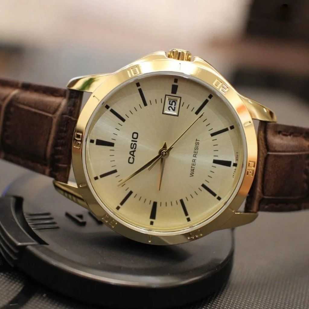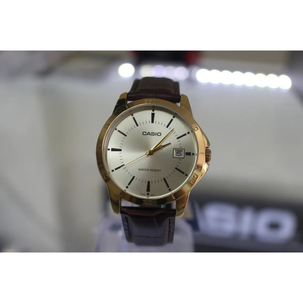 Jam Tangan Pria Analog Casio General MTP-V004GL-9AUDF MTPV004GL Enticer Dial Brown Leather Band