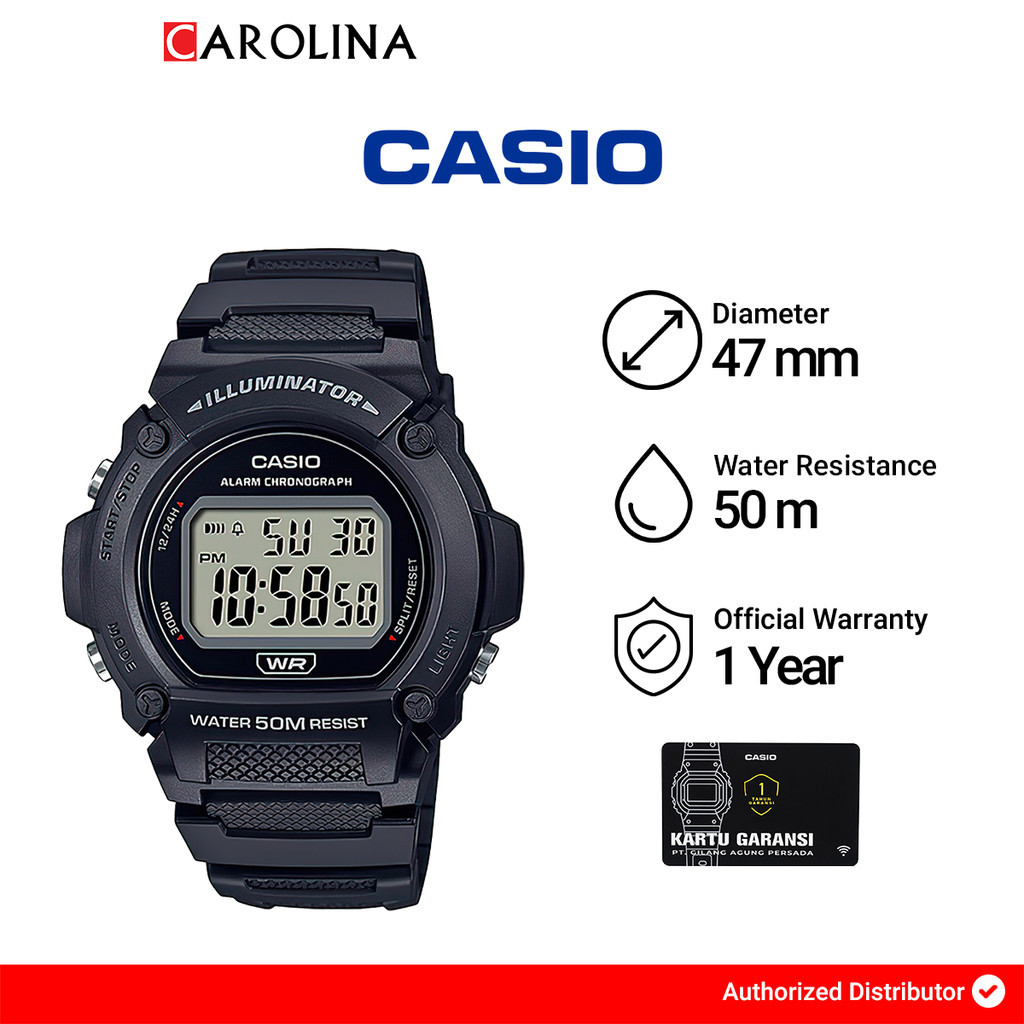 Jam Tangan Pria Casio General W-219H-1A Digital Dial Black Resin Band