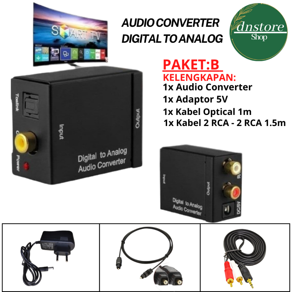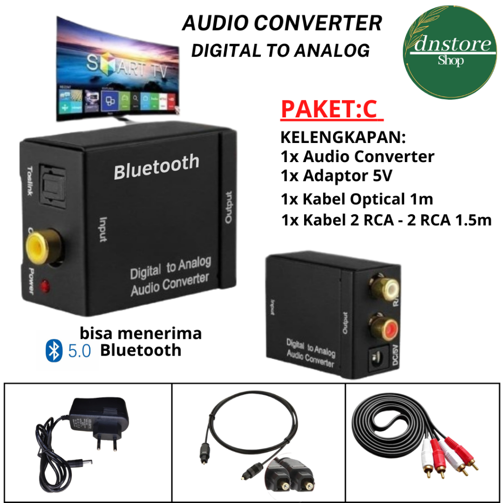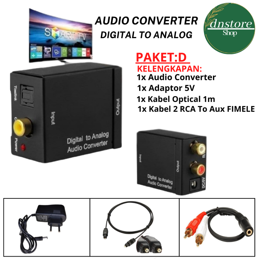 Digital to Analog Audio Converter Toslink Optic Coaxial spdf (TV) to RCA (speaker) optic 1m
