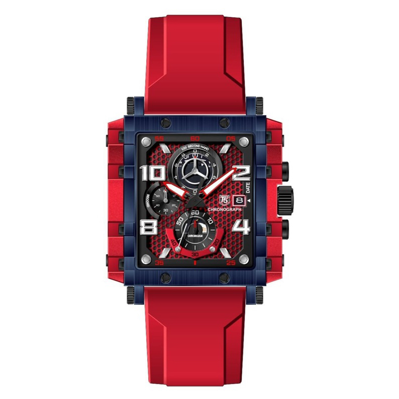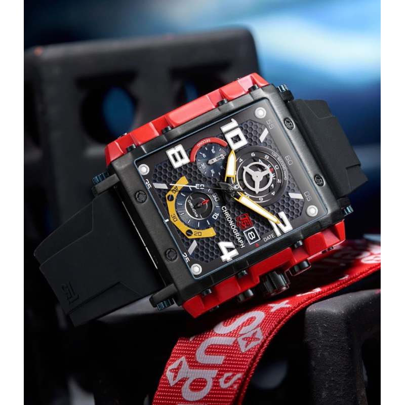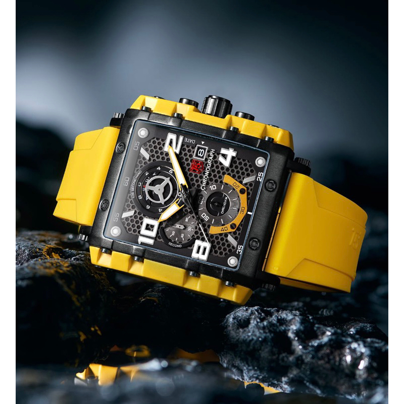 T5 Watch H 3886G Original Chronograph Square Case Convex Mineral Glass Silicone Rubber Strap Box Exclusive T5 Paperbag Manual Book