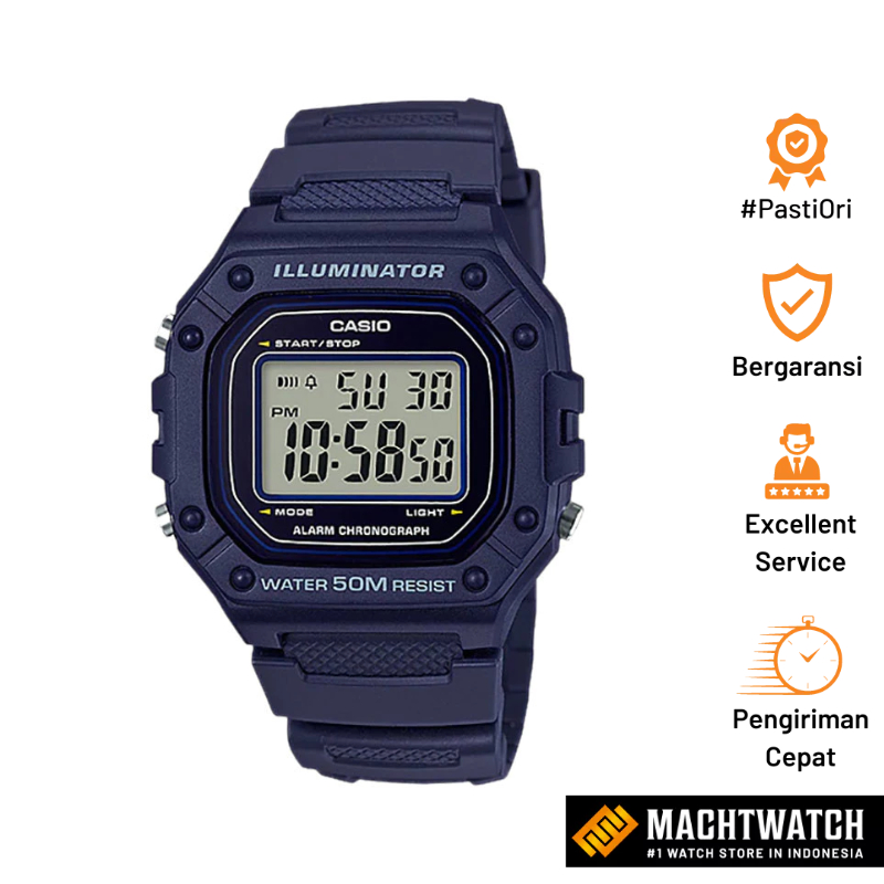 Jam Tangan Pria Digital Casio General W-218H-2AVDF W218H Digital Dial Navy Resin Band