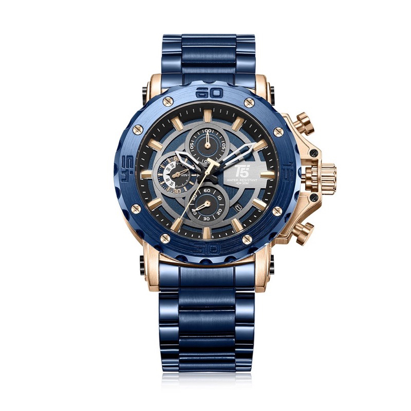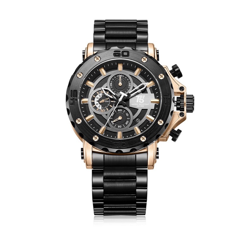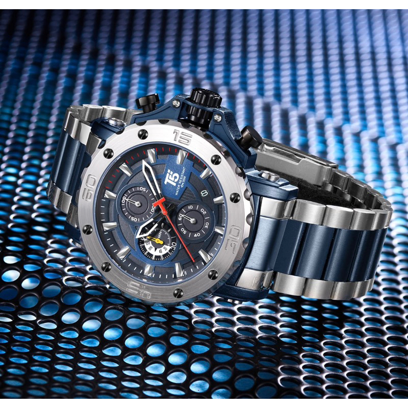 Jam Tangan Pria ORIGINAL T5 H 3702G Stainless Steel Chronograph Aktif Stopwatch Tanggal Aktif Include Box Manual Book & Paperbag