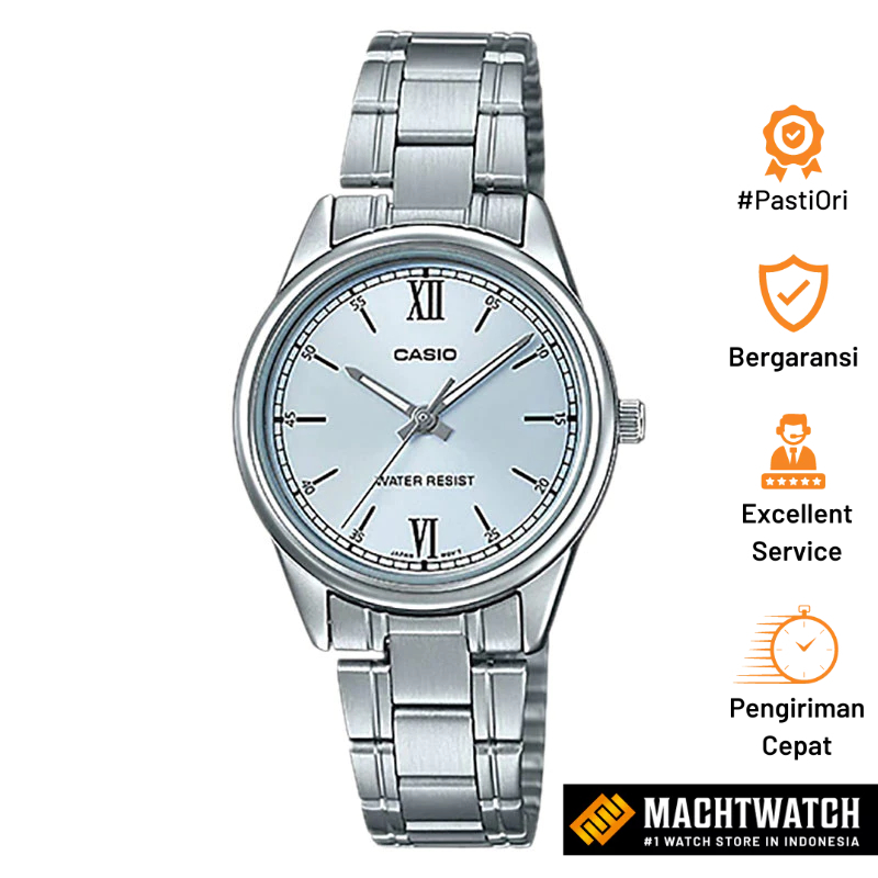 Jam Tangan Wanita Analog Casio General LTP-V005D-2B3UDF LTPV005D Silver Dial Stainless Steel Band