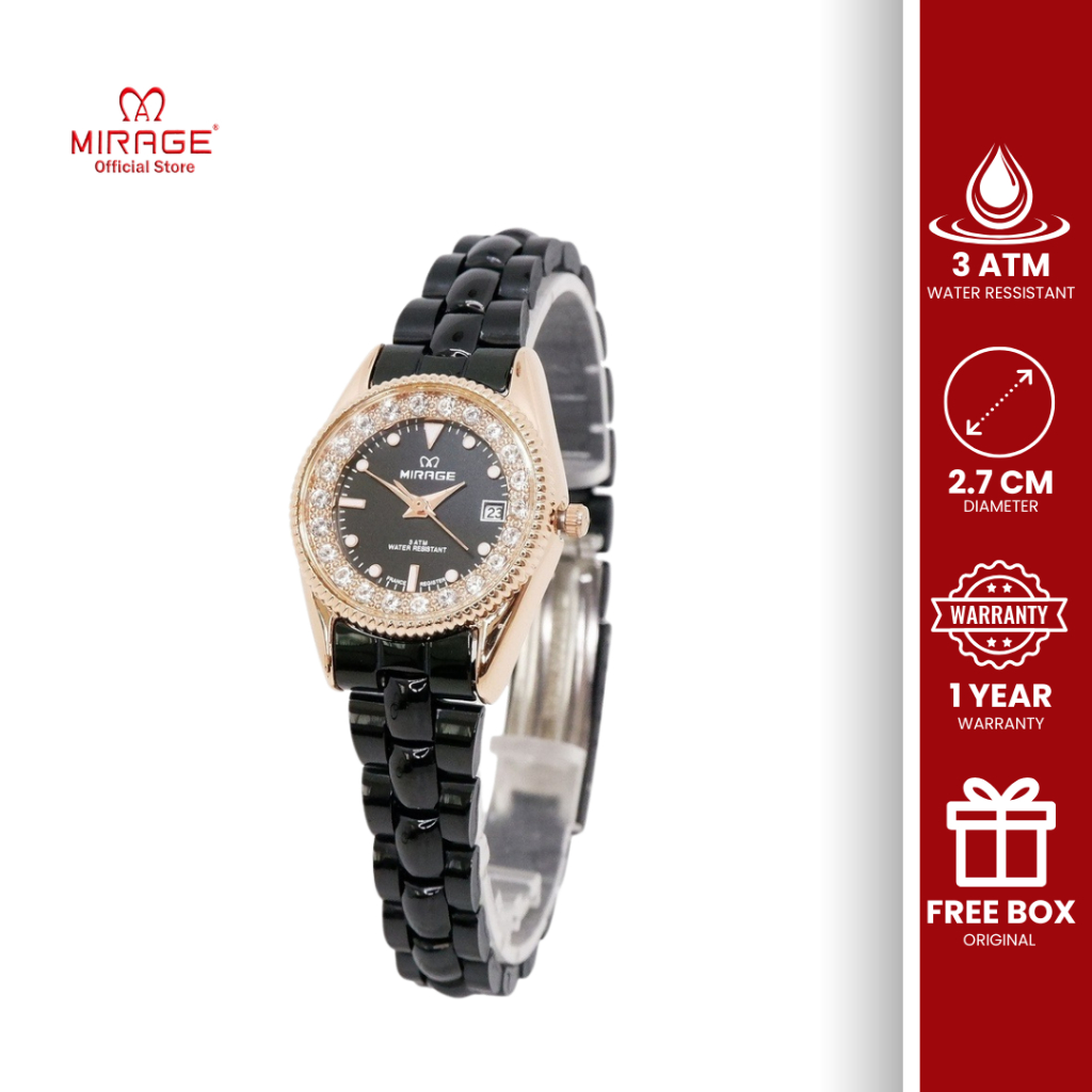 Mirage Jam Tangan Wanita Tahan Air Anti Karat RX Hitam Rosegold 1579 M Stainless Original Bergaransi