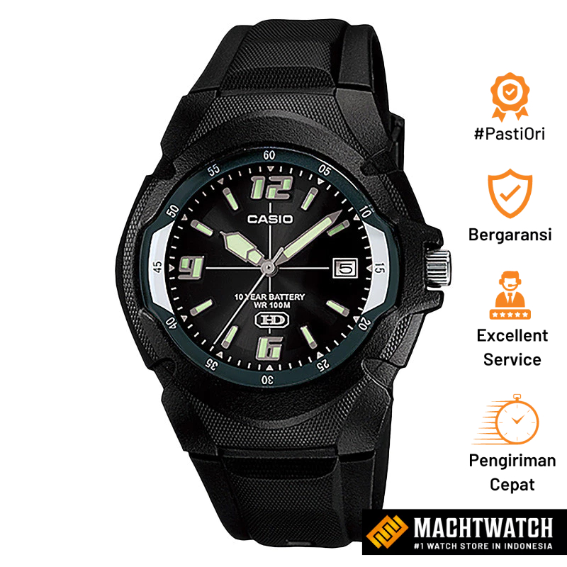 Jam Tangan Pria Analog Casio General MW-600F-1AVDF MW600F Black Dial Resin Band
