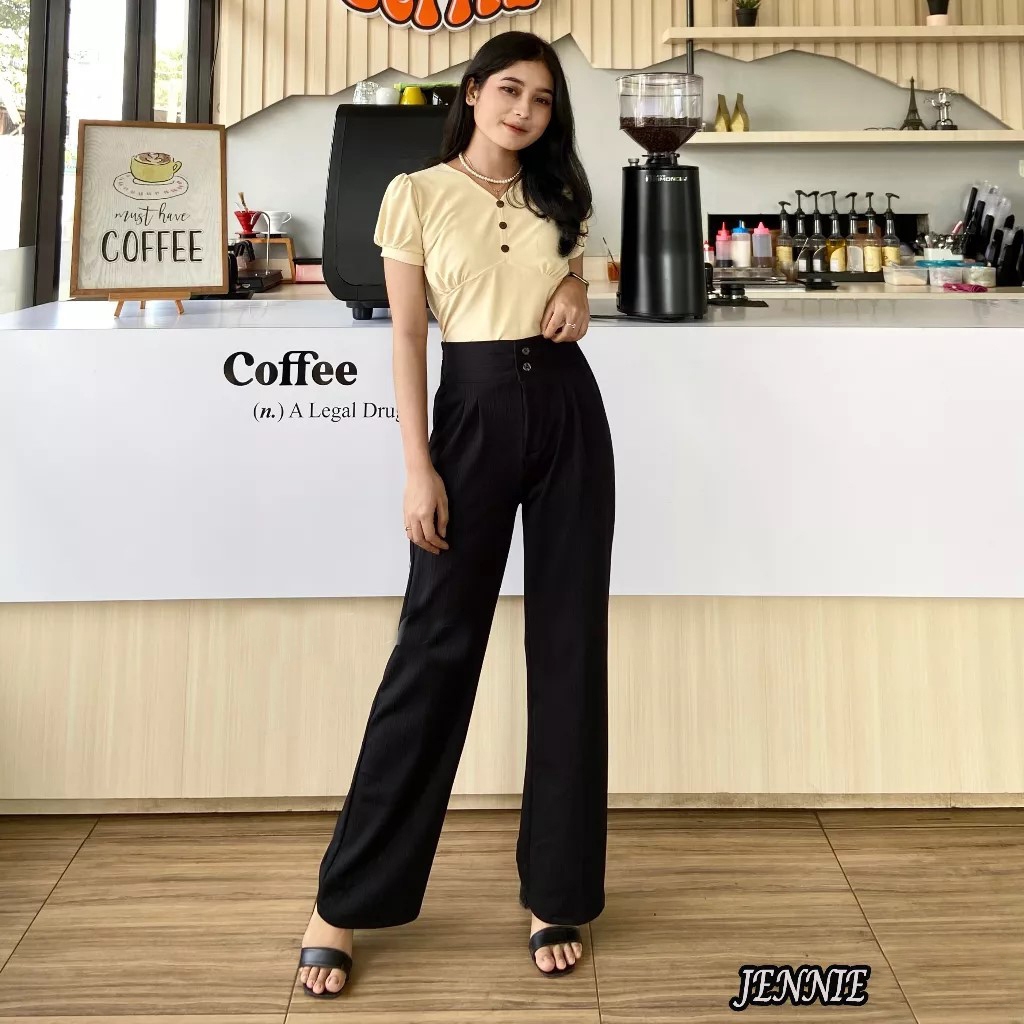 Celana Kulot Highwaist Daily Wanita JENNIE PANTS KNIT PREMIUM Cullote Highwaist Panjang Kekinian