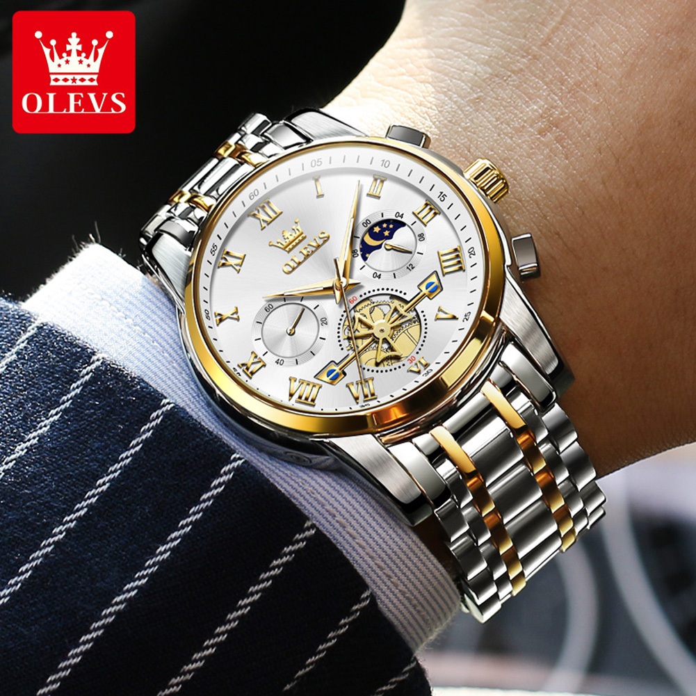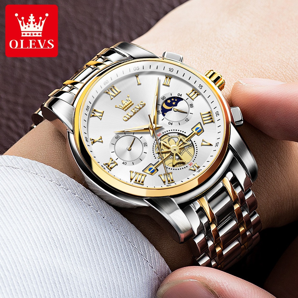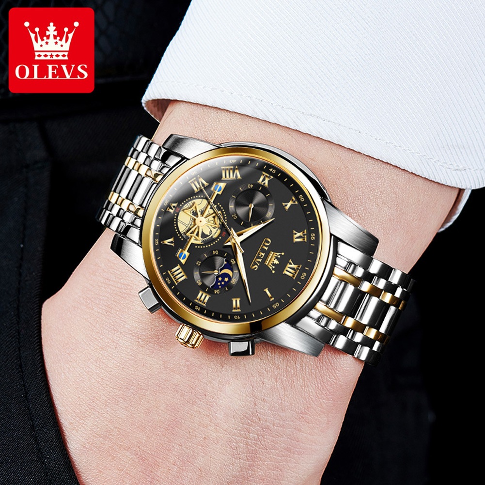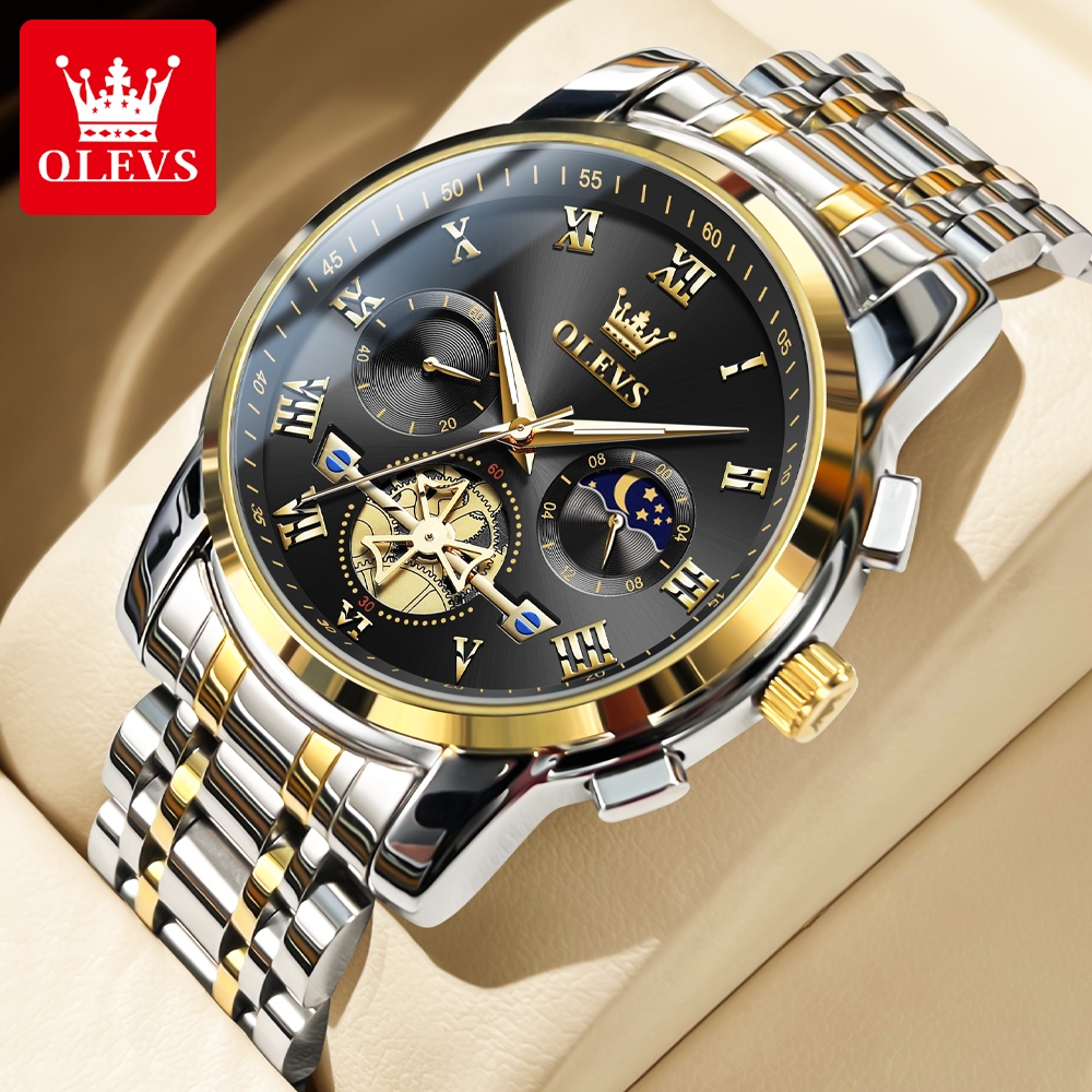 OLEVS Jam Tangan Pria Anti Air Original Terbaru Mewah 2025 Multifungsi Chronograph Stainless Steel Watch Men 2859