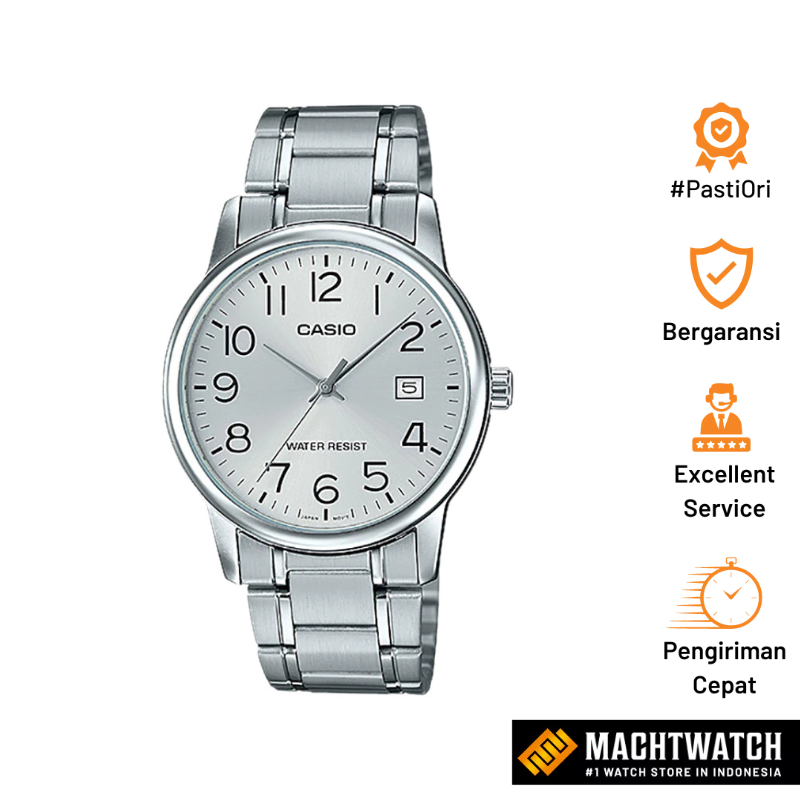Jam Tangan pria Analog Casio Standard MTP-V002D-7BUDF MTPV002D Silver Dial