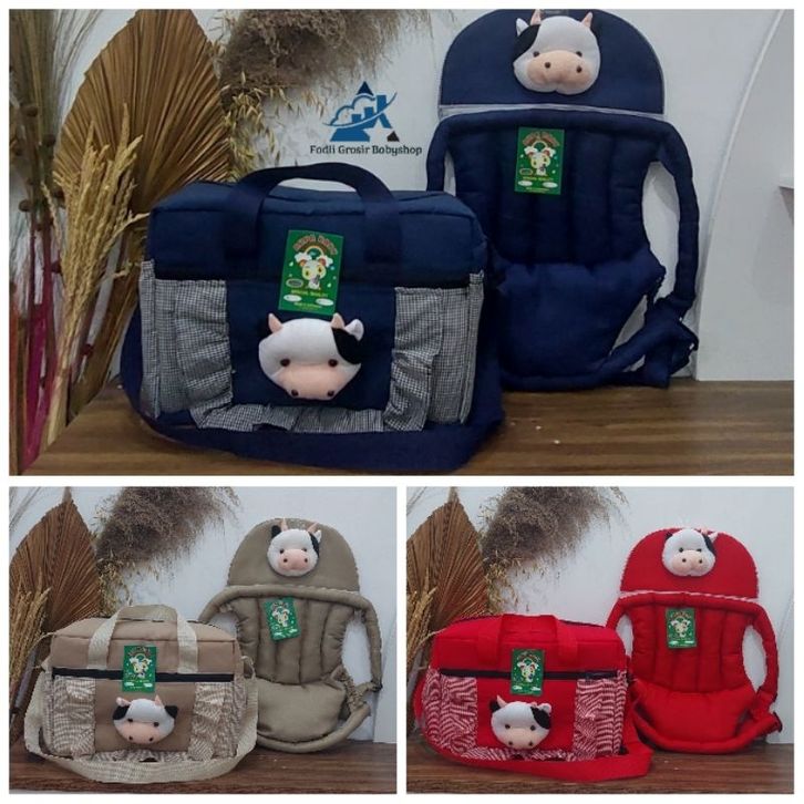 Paket Hemat (2 in 1) Tas Bayi Ukuran Besar Fadli Boneka Sapi Dan Gendongan Bayi Depan Topi Boneka Sapi Terbaru BY