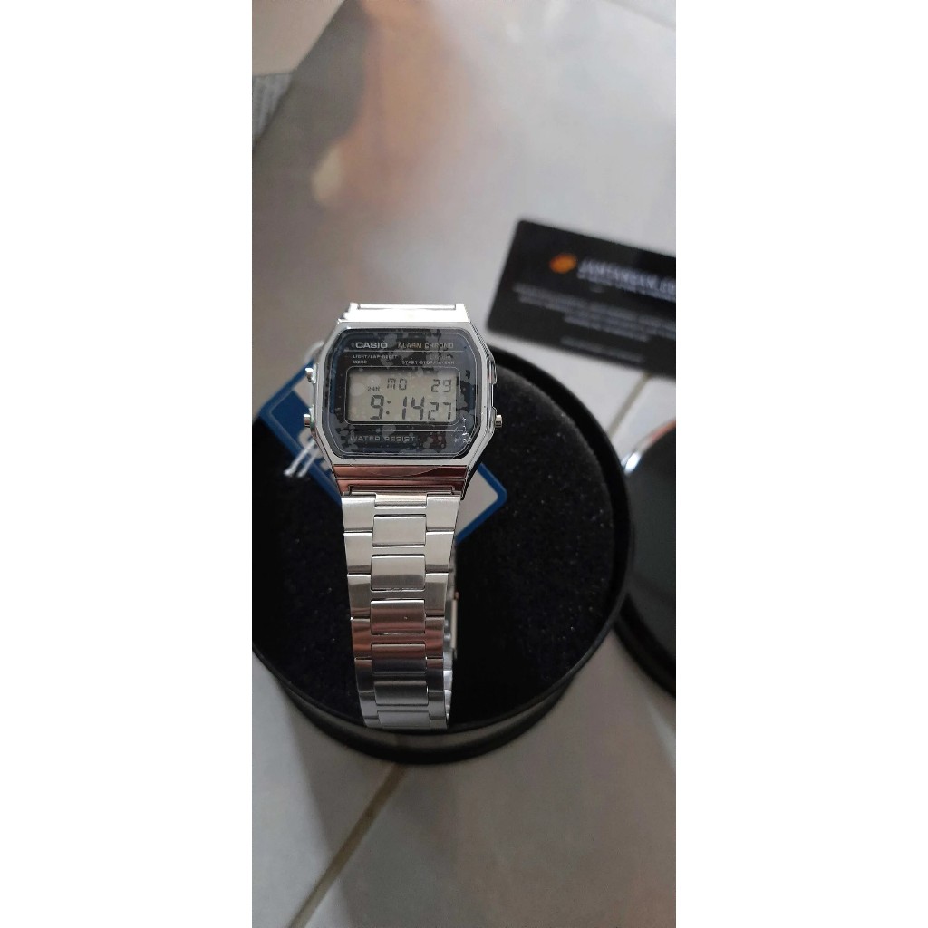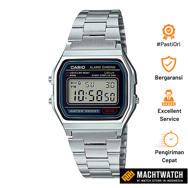 Jam Tangan Pria Digital Casio General A158WA-1DF A158WA1DF Stainless Steel Band