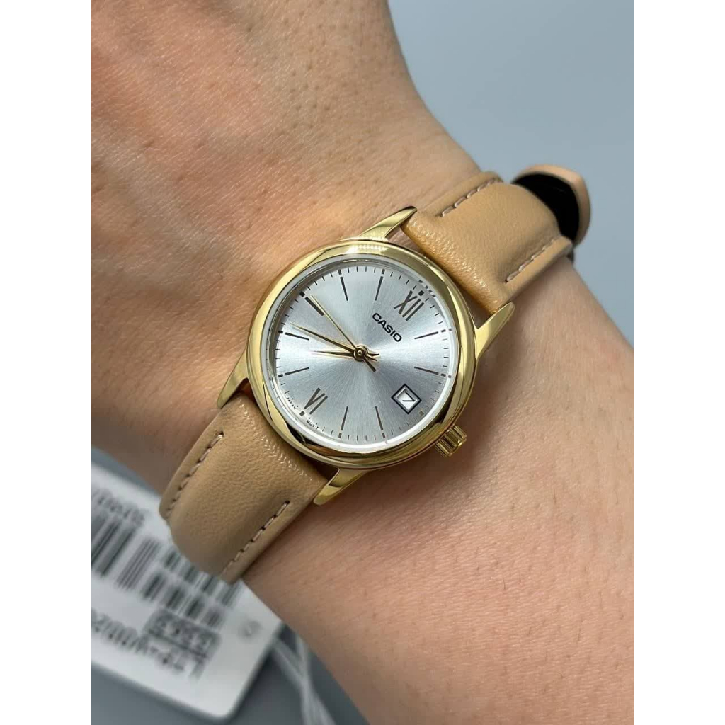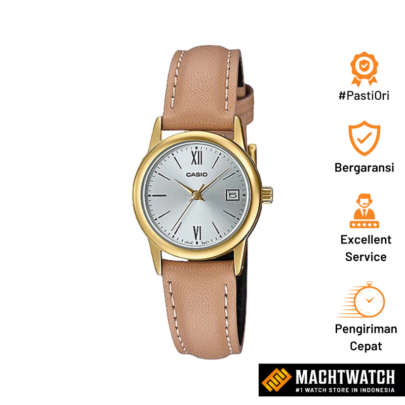 Jam Tangan Wanita Analog Casio General LTP-V002GL-7B3UDF LTPV002 Biege Leather Band