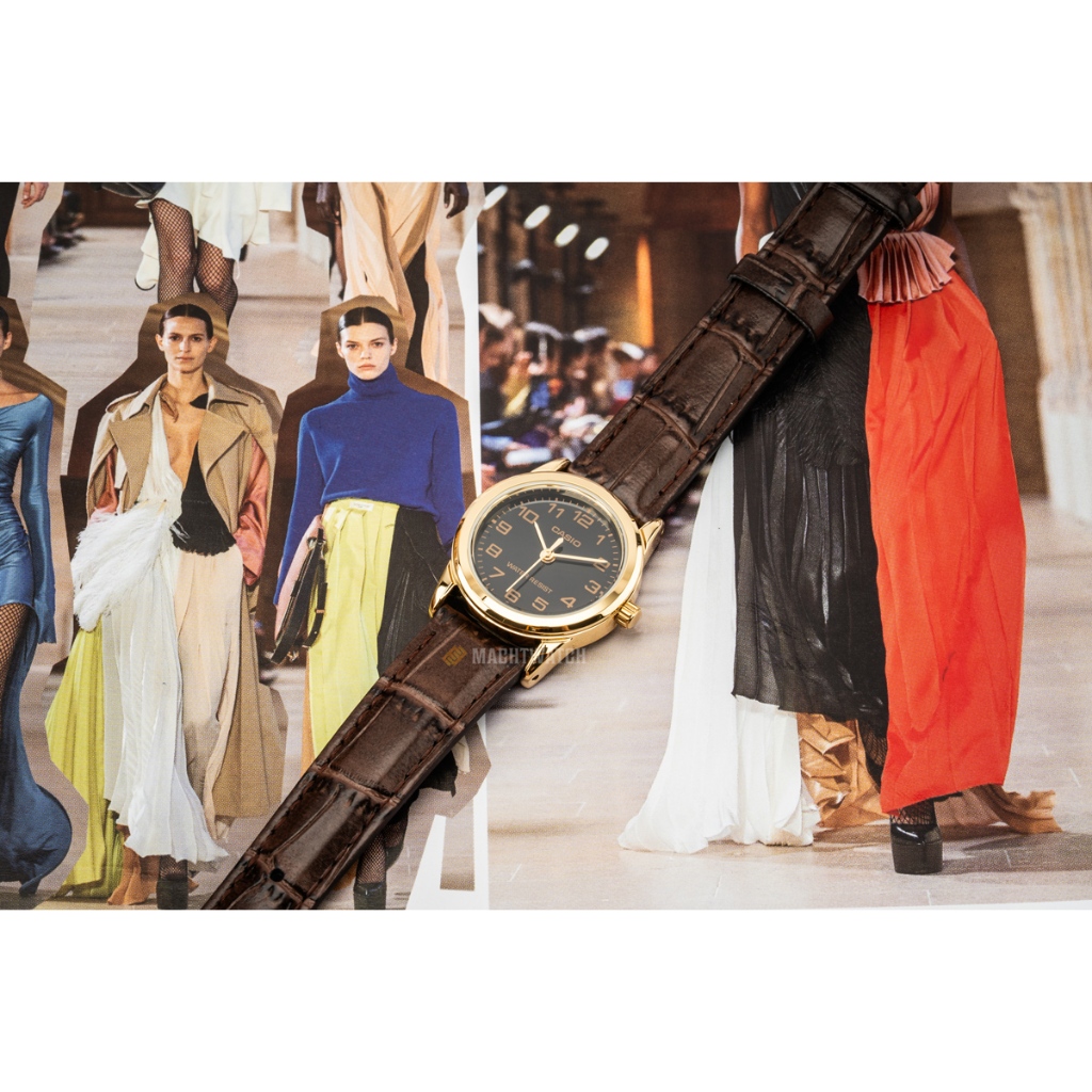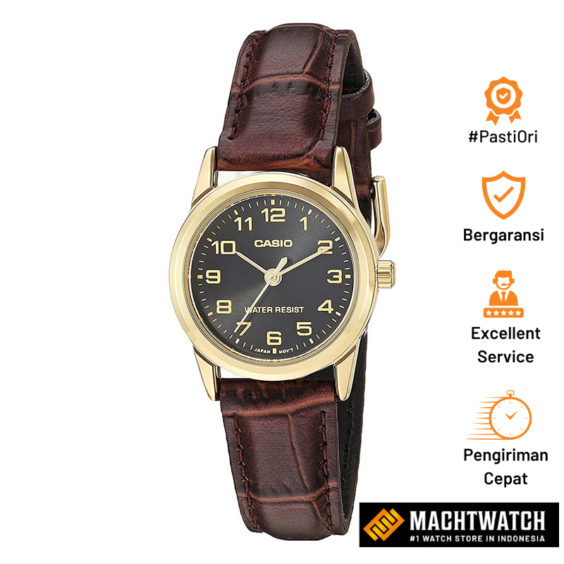 Jam Tangan Wanita Analog Casio General LTP-V001GL-1BUDF LTPV001GL Brown Leather Band
