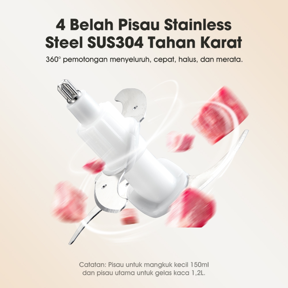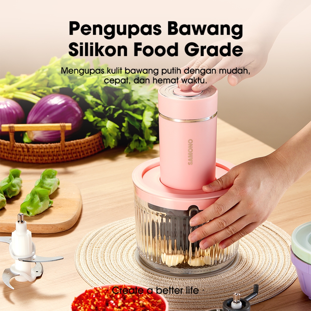 SAMONO SW-MFC300 Food Chopper Penggiling Daging Bumbu Dengan Pengupas Bawang Wadah Kaca 1,2L + 3 Cup