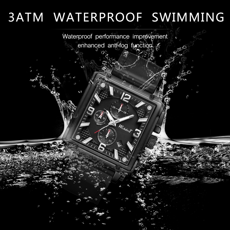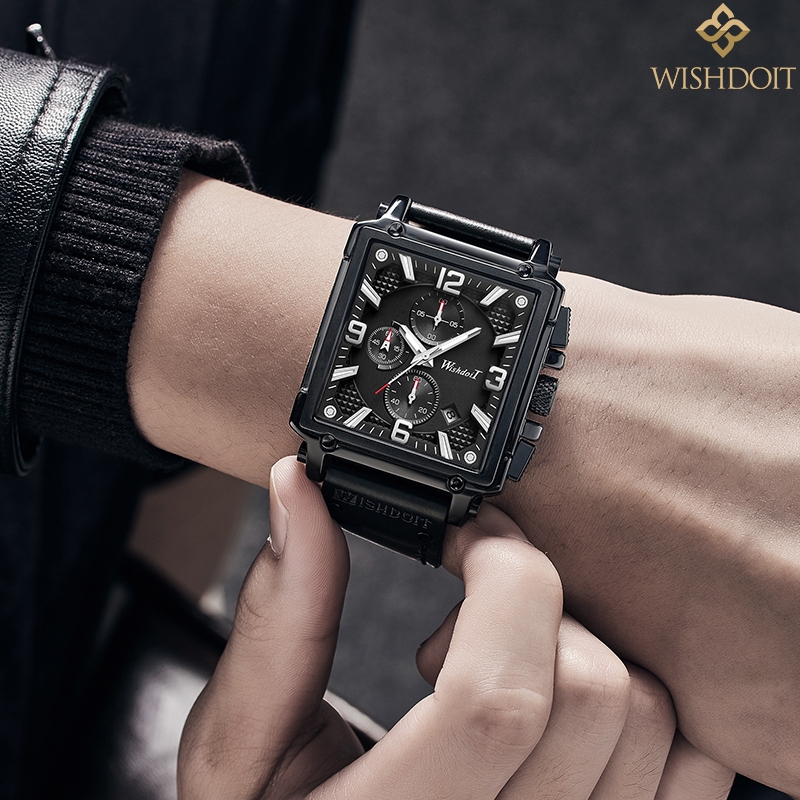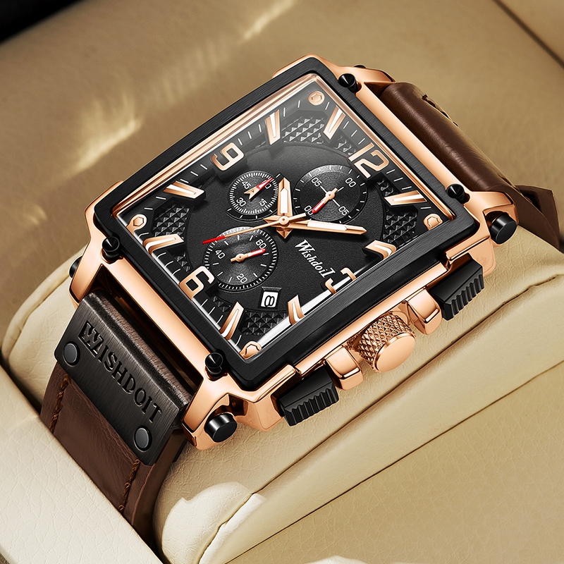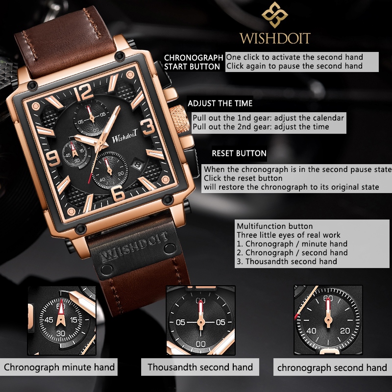 WISHDOIT Jam Tangan Pria 100 PERSEN Asli Anti Air Tali Kulit Mewah Bisnis Pria Multifungsi Kronograf Mode Merek Mewah Set Hadiah