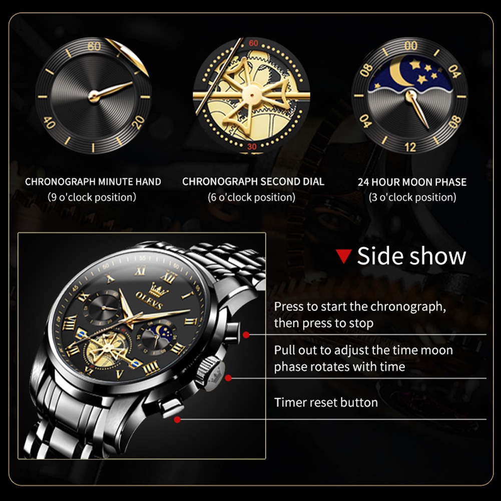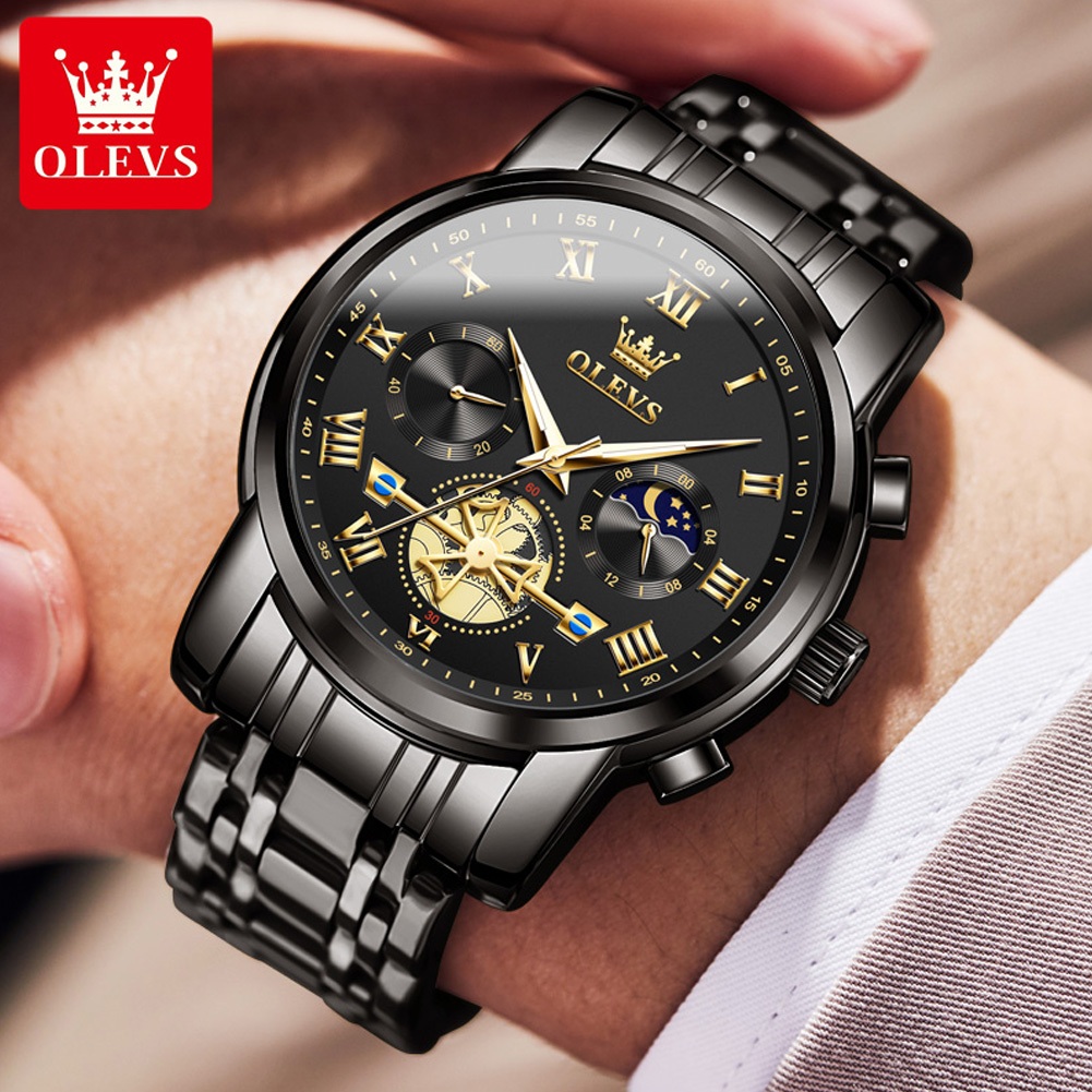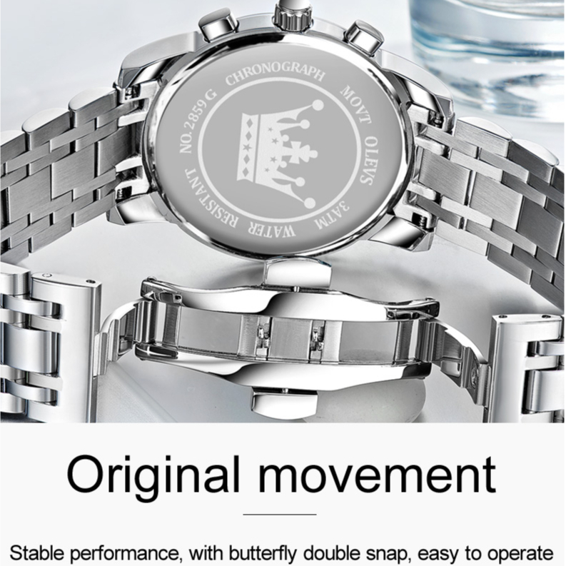 OLEVS Jam Tangan Pria Original Anti Air Tahan Luminous Fashion Analog Chronograph Stainless Steel Watch Men 2859