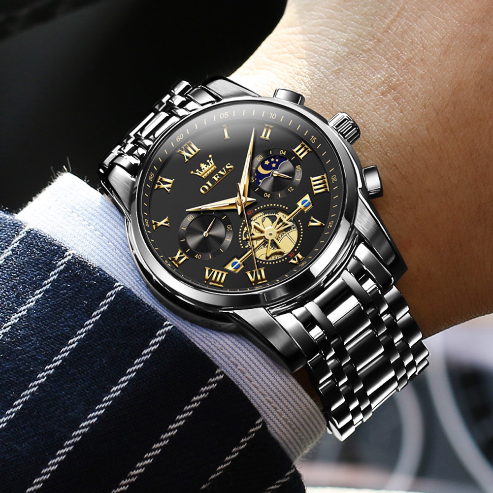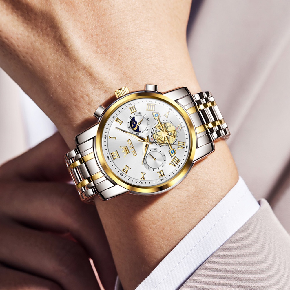 OLEVS Jam Tangan Pria Anti Air Original Cowok Terbaru Tahan Luxury Led Sport Analog Chronograph Stainless Steel Watch Men