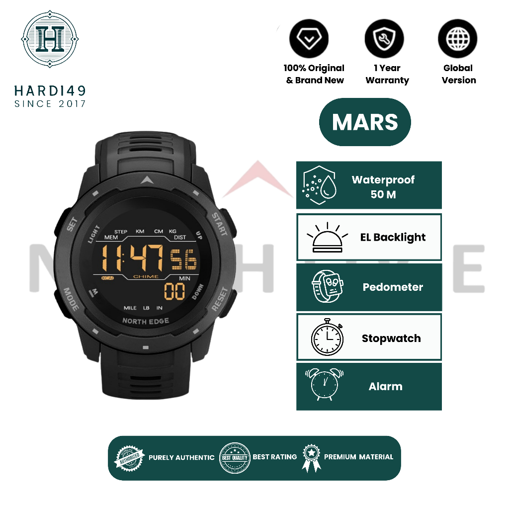 North Edge Mars Original Men Waterproof Digital Sport Watch Calorie Timer Alarm Clock ORIGINAL IMPORT