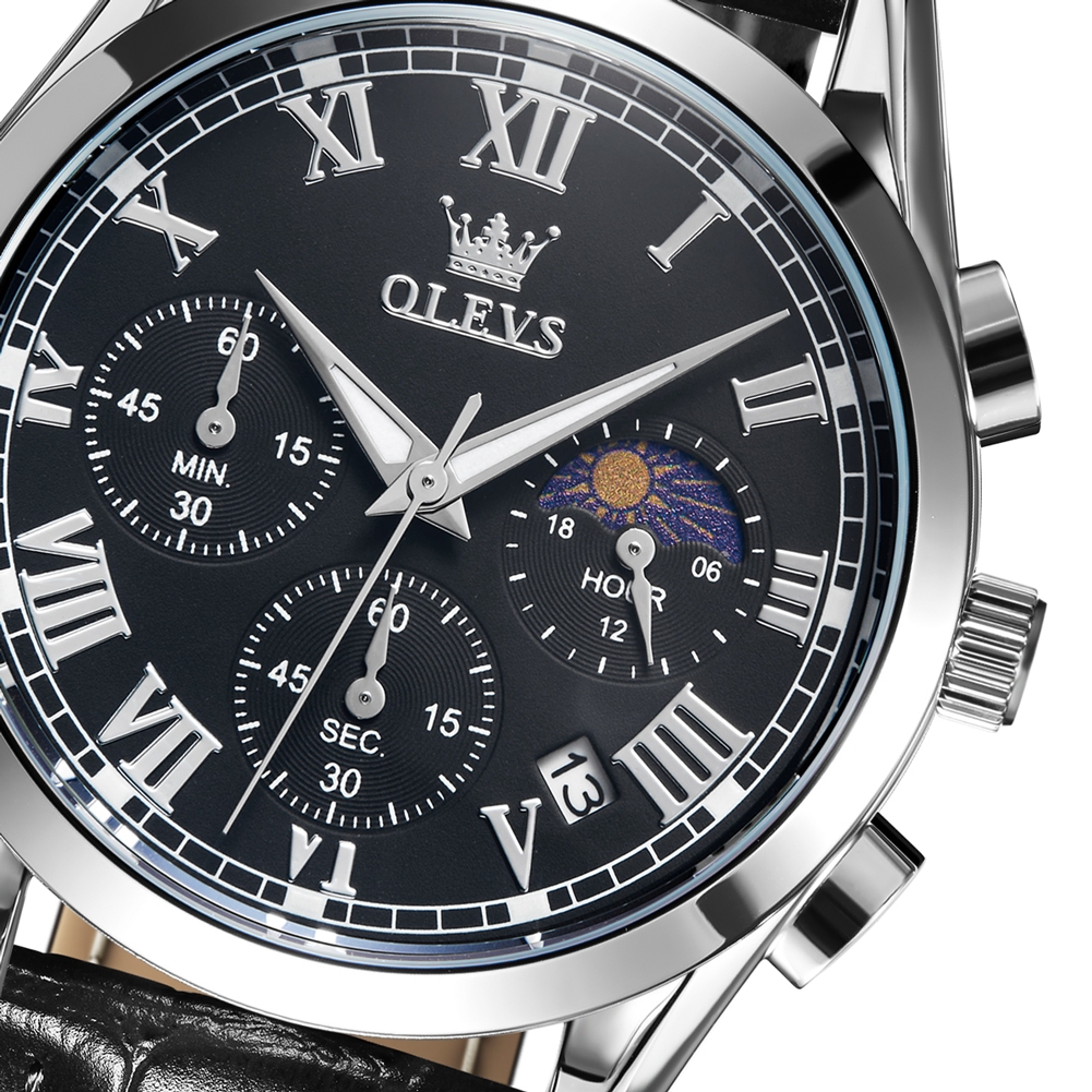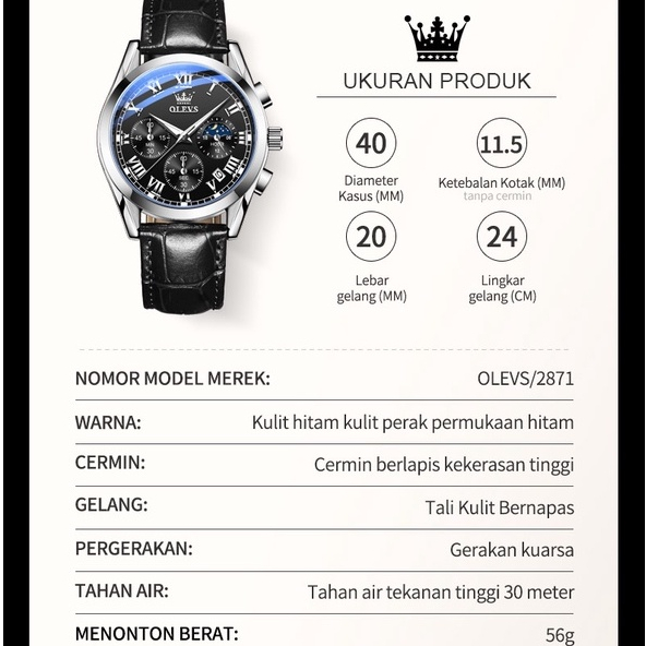OLEVS Jam Tangan Pria Anti Air Original Cowok Kulit Hitam Coklat Luxury Chronograph Watch Men 2871