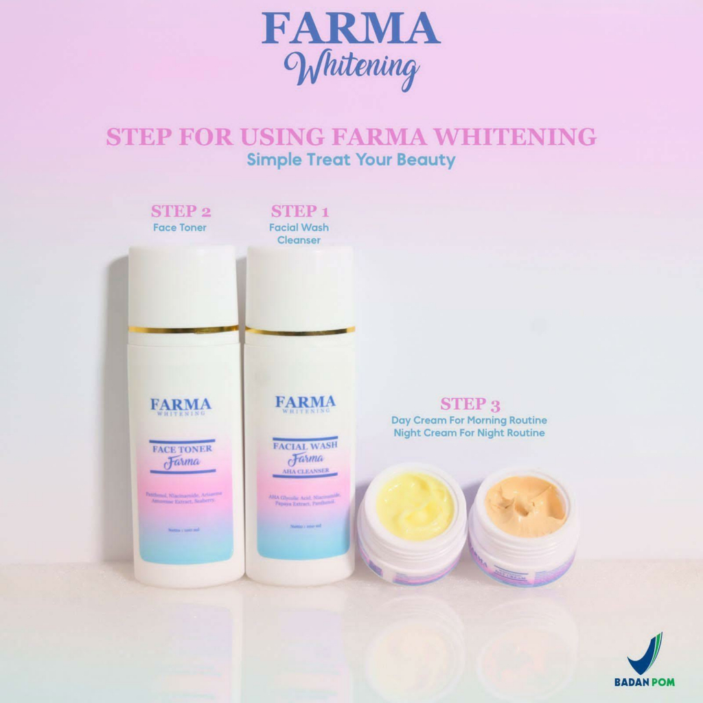 Day Cream, Toner, Facial Wash, Paket lengkap farma, Night Cream