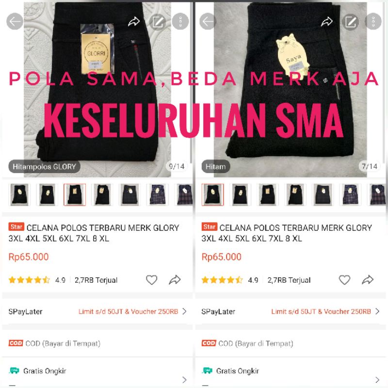 CELANA POLOS TERBARU MERK SAYA/ GLORY 3XL 4XL 5XL 6XL 7XL 8 XL