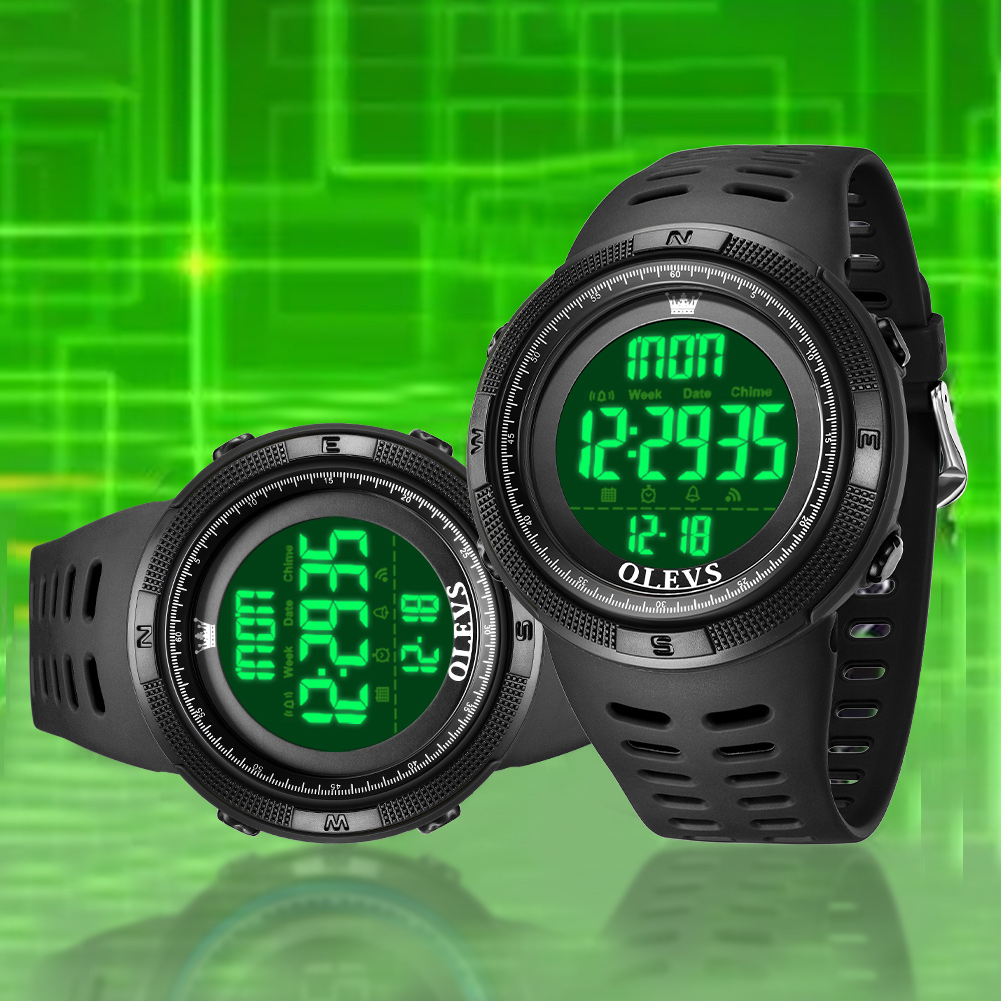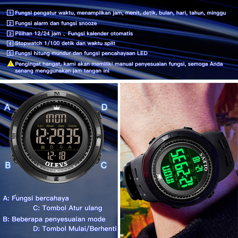 OLEVS Jam Tangan Digital Pria Original Anti Air 50 Meter Multifungsi LED Alarm Men Watch Hitam