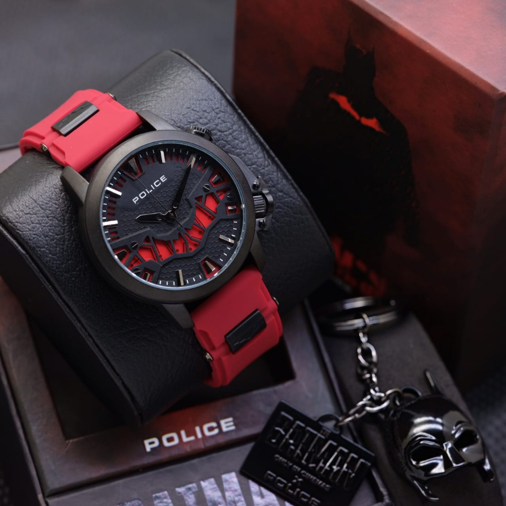Jam Tangan Pria Police-22051 Batman Free Gantungan Kunci Tali Rubber Body Bulat Box Exclusive