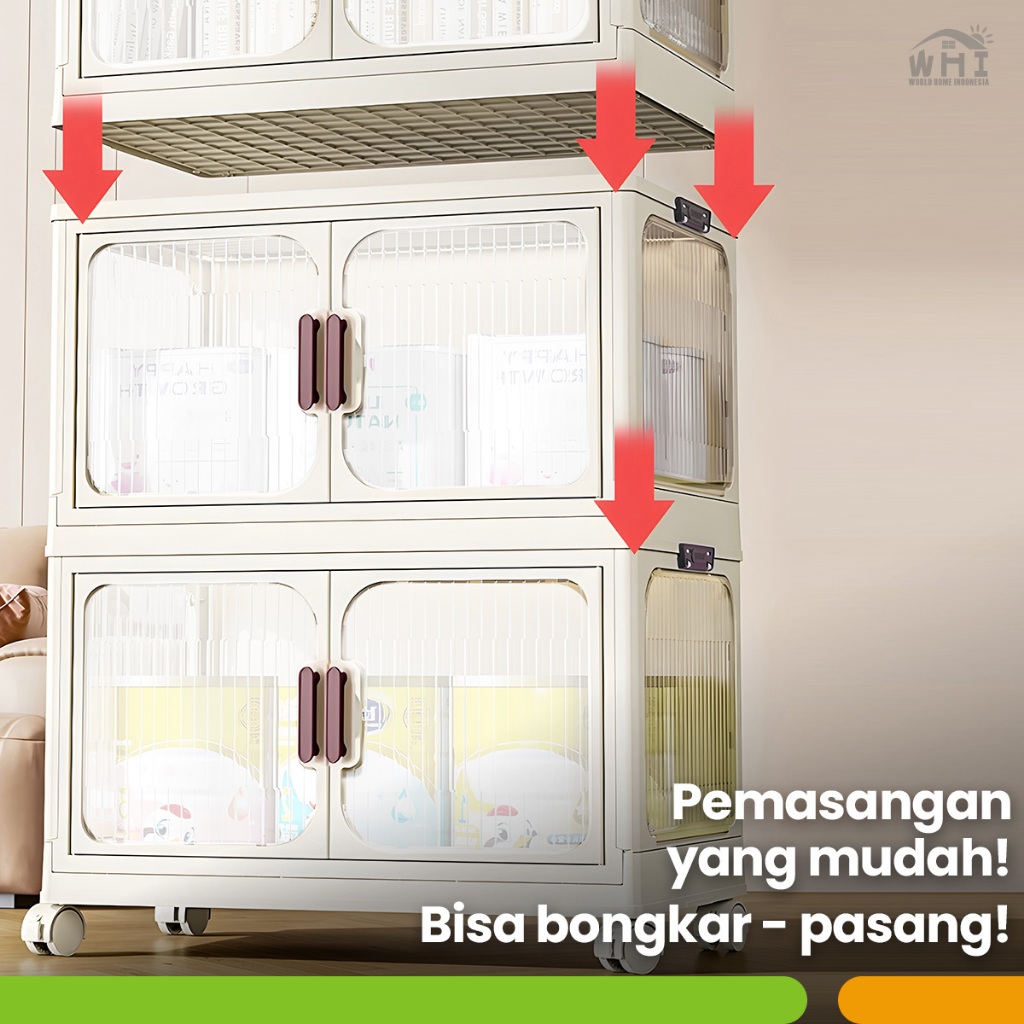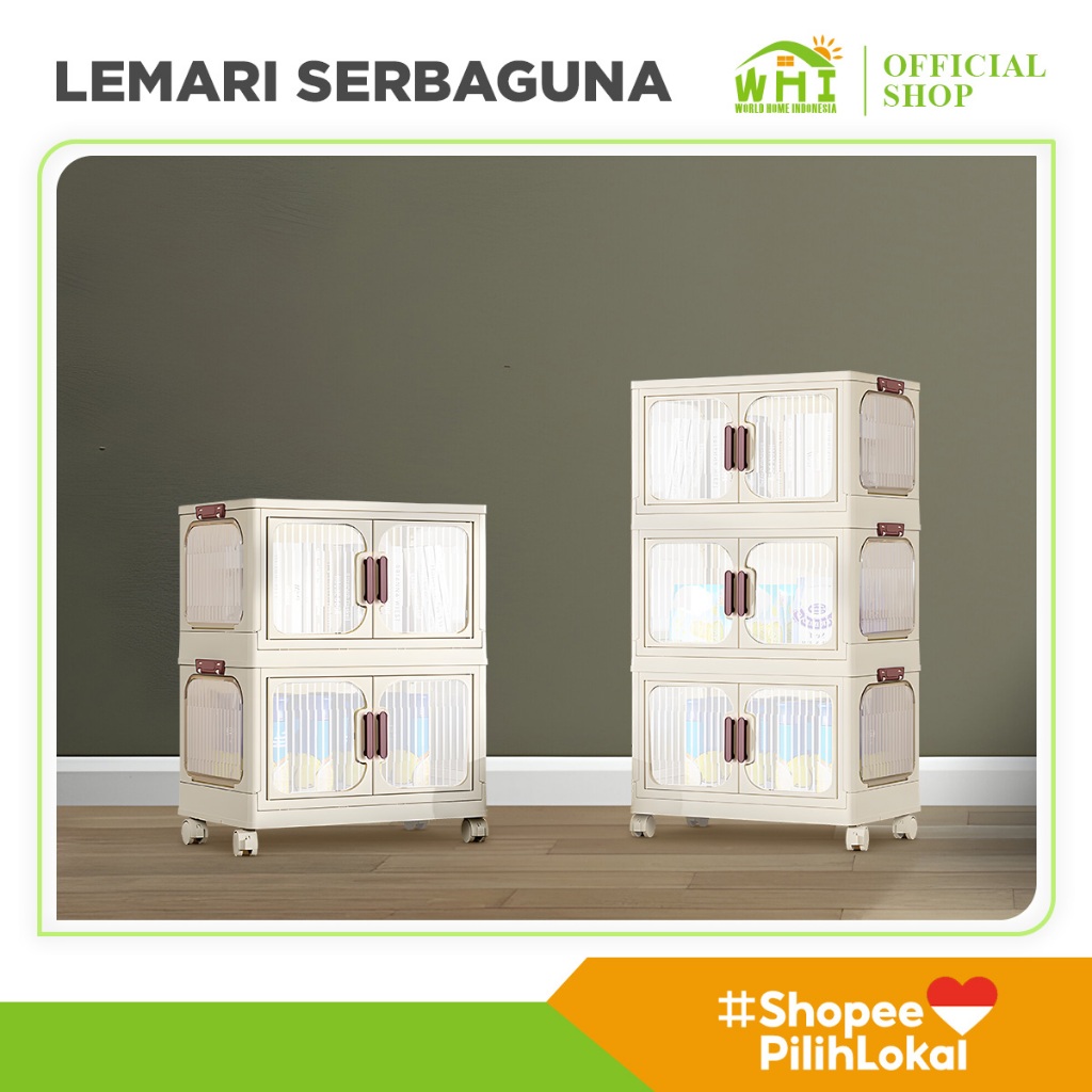 World Home Lemari Susun Penyimpanan Serbaguna Storage 2 3 Tingkat Portable Rak Plastik Lipat Susun