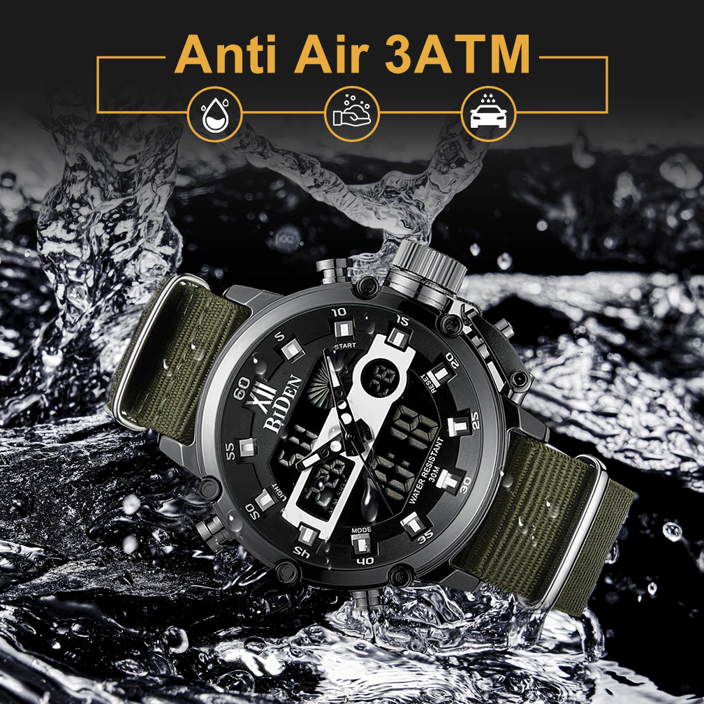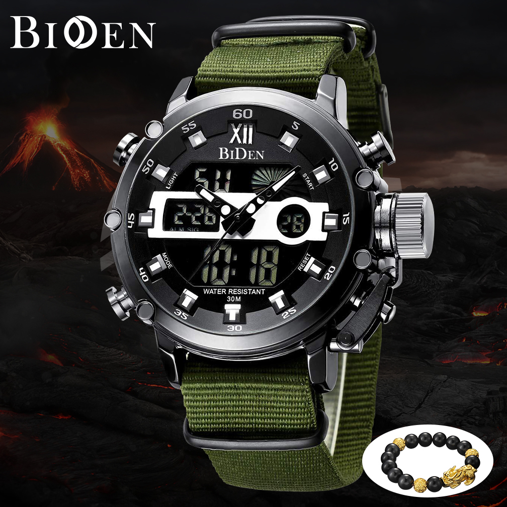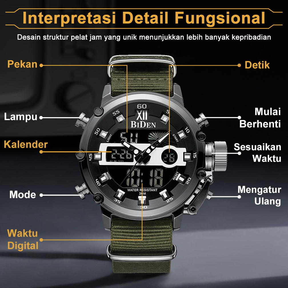 BIDEN Jam Tangan Pria Anti Air Digital Analog Multifungsi Nilon Olahraga Militer Waktu Ganda Jam Tangan Cowok Original